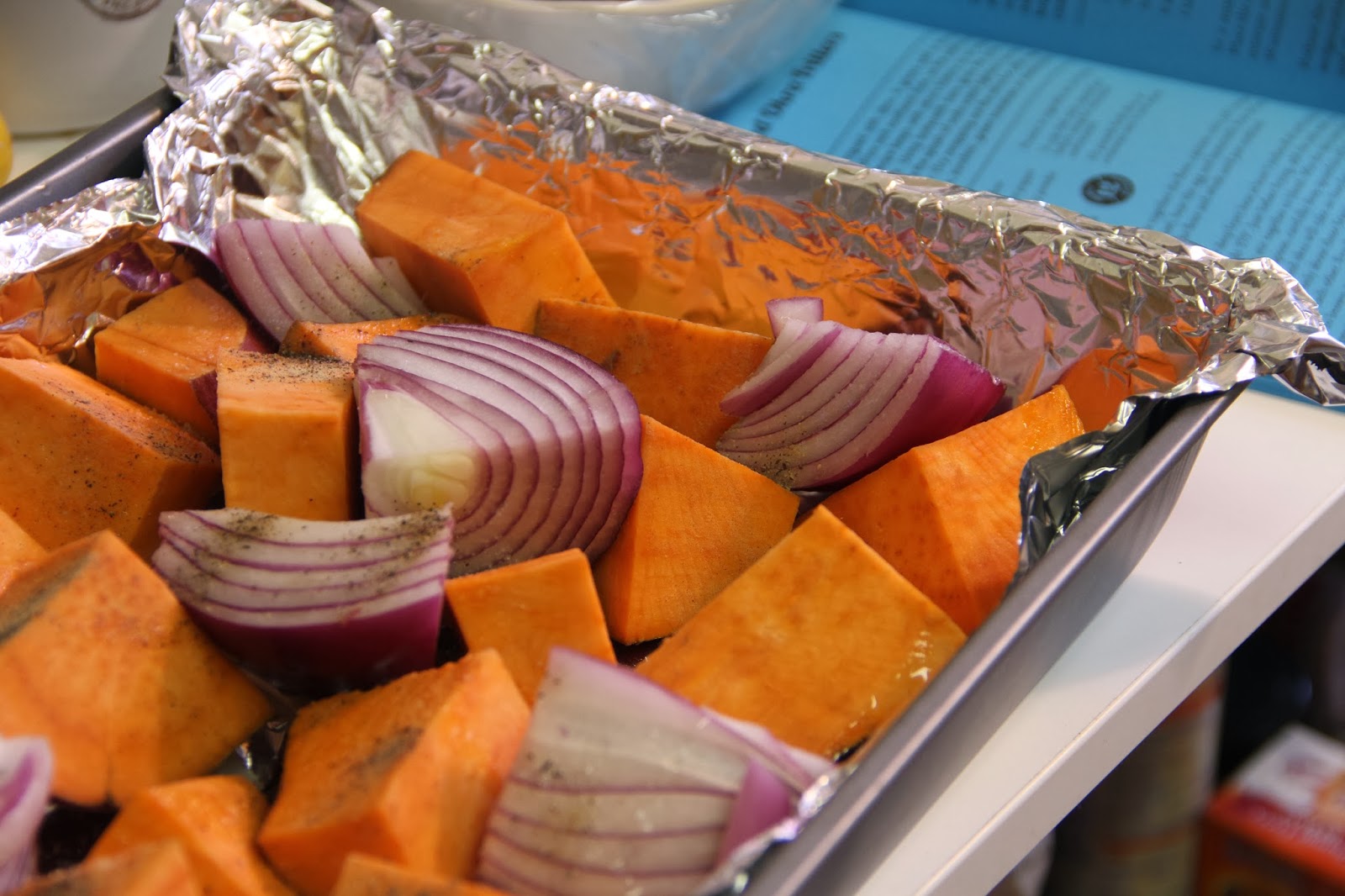 The end result was so tasty! I love the sauce, especially with the baked sweet potatoes and red onions. I wish I bought leaner and thinner cuts of chicken thigh, but it’s not a huge deal. If you want to attempt to make this, I would set aside at least four to five hours to prep and bake. Not only does make the paste take time because of all the de-seeding, but the chicken needs to marinate for 30 minutes in the fridge and 30 minutes at room temperature. The vegetables also have to bake for 20 minutes before you place the marinated chicken on top. And lastly, the bake time is about an hour (or at least it took me that long because my chicken thighs were pretty thick). Nevertheless, the labor was worth it and now I can enjoy this dish for the next three to four days!